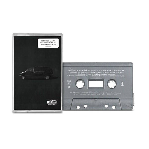 2018년 내한공연을 갖은 바 있는 컨템포러리 힙합의 아이콘 Kendrick Lamar의 통산 2번째 앨범이자 메이저 데뷰앨범인 Good Kid M.A.A.D City [10th Anniversary][Cassette]]! 발매 10주년을 맞이해 새로운 아트웍으로 재발매! 본 앨범은 빌보드 앨범차트 2위에 오르며 스타덤에 오르는 계기를 마련했던 앨범으로 싱글 'Swimming Pools (Drank)', 'Backseat Freestyle', 'Poetic Justice', 'Bitch, Don't Kill My Vibe'등의 인기와 함께 2014년 그래미어워즈 올래의 앨범을 포함 총 4부문에 후보에 오르기도 했다.